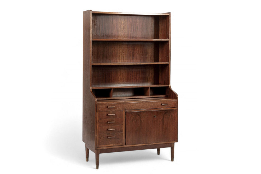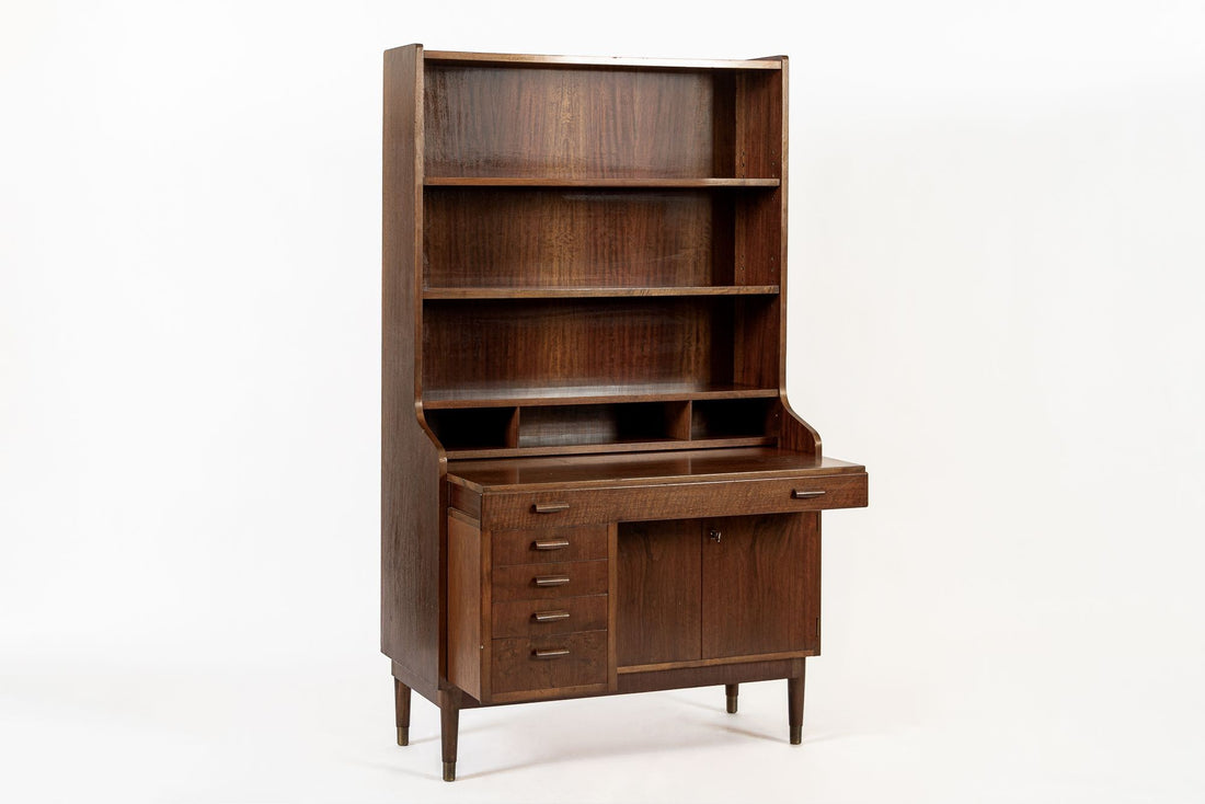 Mid Century Danish Walnut Wood Pull-Out Secretary Desk & Bookcase