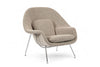 The mid century modern classic Saarinen for Knoll Womb lounge chair was designed by Eero Saarinen in 1946 in response to Florence Knoll's request for 'a chair that was like a basket full of pillows - something she could really curl up in.' The result was the Model 70 “Womb” chair - an elegantly sculptural and incredibly comfortable chair that has come to be a highly collectible mid century modern icon. The innovative design was drawn from the shipbuilding industry and includes foam padding and upholstery over a single-piece fiberglass shell seat resting on a tubular steel frame.