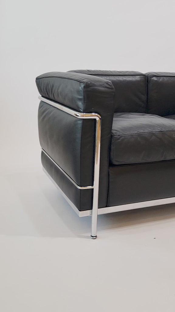 Authentic Cassina LC2 Black Leather Two-Seat Sofa by Le Corbusier 1994